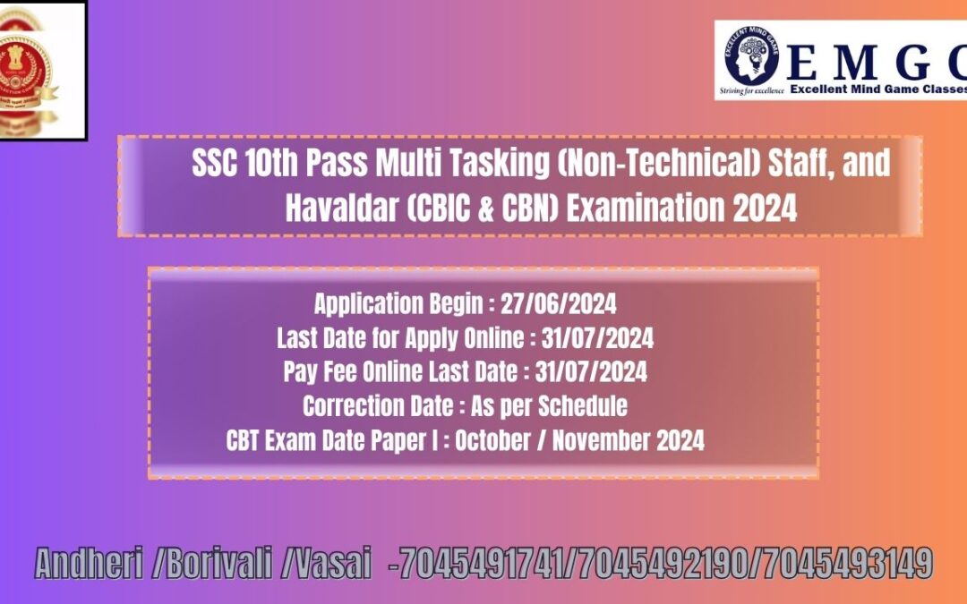SSC 10th Pass Multi Tasking (Non-Technical) Staff, and Havaldar (CBIC & CBN) Examination 2024